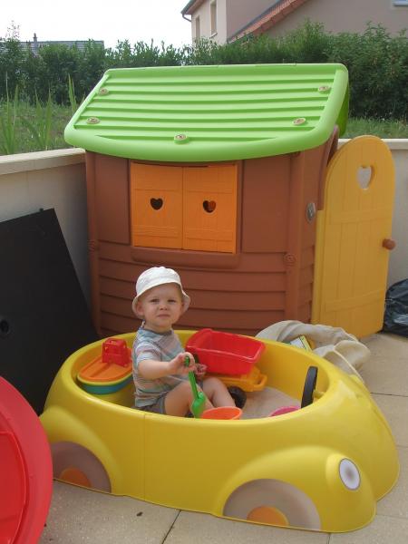 Comme vous le voyez, j'ai garé ma nouvelle voiture bac à sable Oui-Oui juste à côté de ma résidence secondaire.