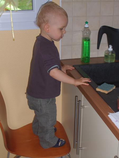 Maintenant je suis grand, alors j'aide à faire à manger.